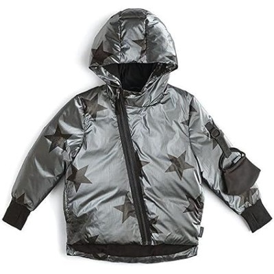 Children's Down Jacket Boys and Girls Winter Hooded Jacket Electroplating Silver Fabric 90 Velvet Content Windproof and