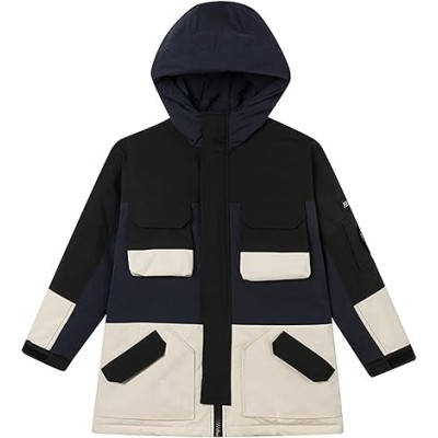 Children's Thickened 90 White Duck Down Jacket Girls and Boys Workwear Color Matching Hooded Warm Winter Windproof Jacket
