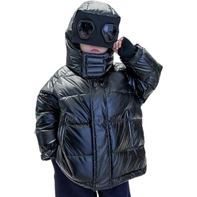Children's Fluffy White Duck Down Jacket Hooded Glasses Waterproof Shiny Jacket Boys and Girls