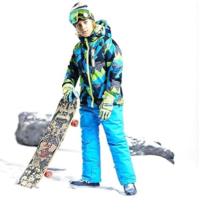 Boys Snowboard Ski Jacket Pants Set Youth Snowsuit Children Removable Hooded Ski Coat Warm in -30°C (-22℉)