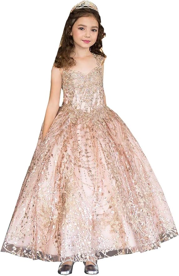 Sequins Lace Tulle Quinceanera Dresses for Little Girls Sparkly Prom Ball Gowns Princess Flower Girl Party Dress