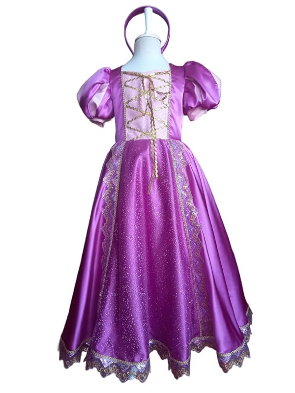 Princess Rapunzel Dress, Rapunzel dress. Purple Tulle Ball Gown, Puff Sleeve Party Dress with Floral Accent (3 year)