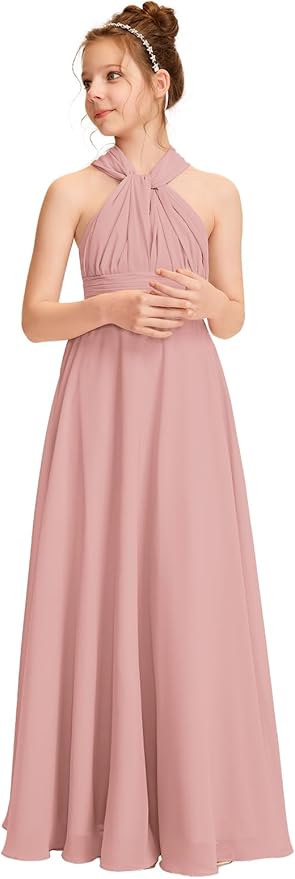 Halter One Shoulder Junior Bridesmaid Dress V Neck Floor Length Flower Girl Dresses for Wedding Teen Girls Party