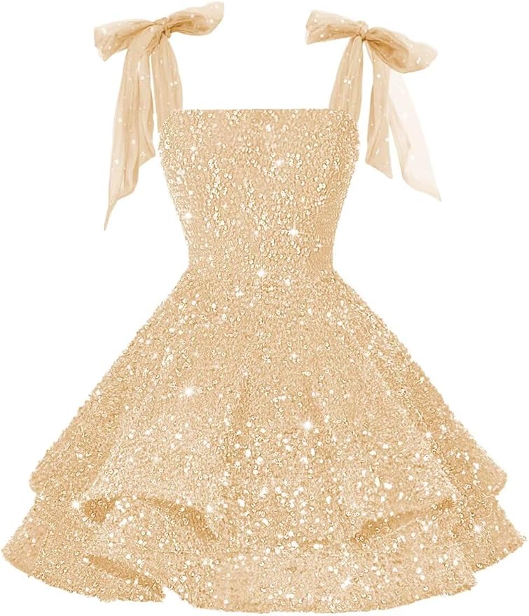 Sparkly Sequin Short Homecoming Dresses 2025 Spaghetti Strap Sequin Prom Dress Bow Cocktail Party Dress RO257