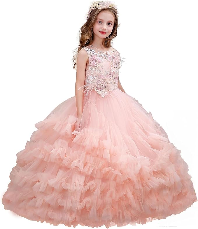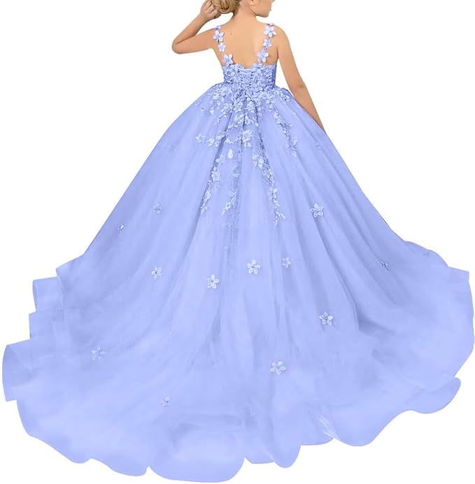 Tulle Flower Girl Dress for Wedding Lace Applique Pageant Dress First Communion Puffy Ball Gown for Girls Party Dress