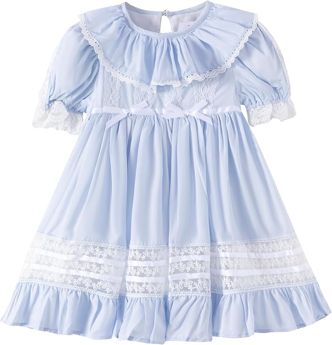Girls Dress, Vintage Bluebell Heirloom Dress, White Lace, Puff Sleeve, Long Style for Spring and Autumn