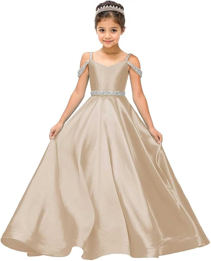 Satin Flower Girl Wedding Dress Rhinestone Princess Pageant Dresses for Girls Party Ball Gowns