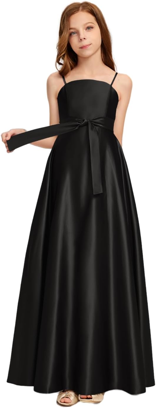 Junior Bridesmaid Dress, Flower Girl Dresses, Formal Dress for Teen Girls Bow A-line Square Floor-Length Satin