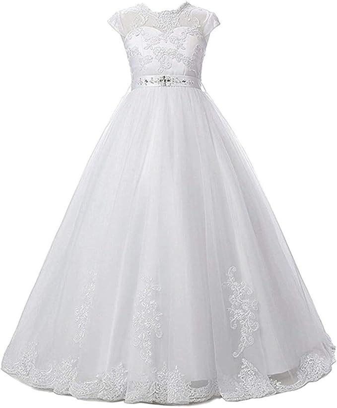 Magicdress White First Communion Baptism Dresses for Girls 7-16 Lace Princess Flower Girls Gown 10