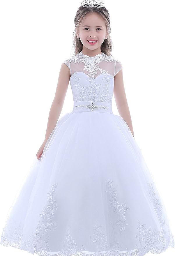 HEVECI Pure White First Communion Dresses for Girls 7-16 Princess Flower Girl Dress Wedding Party