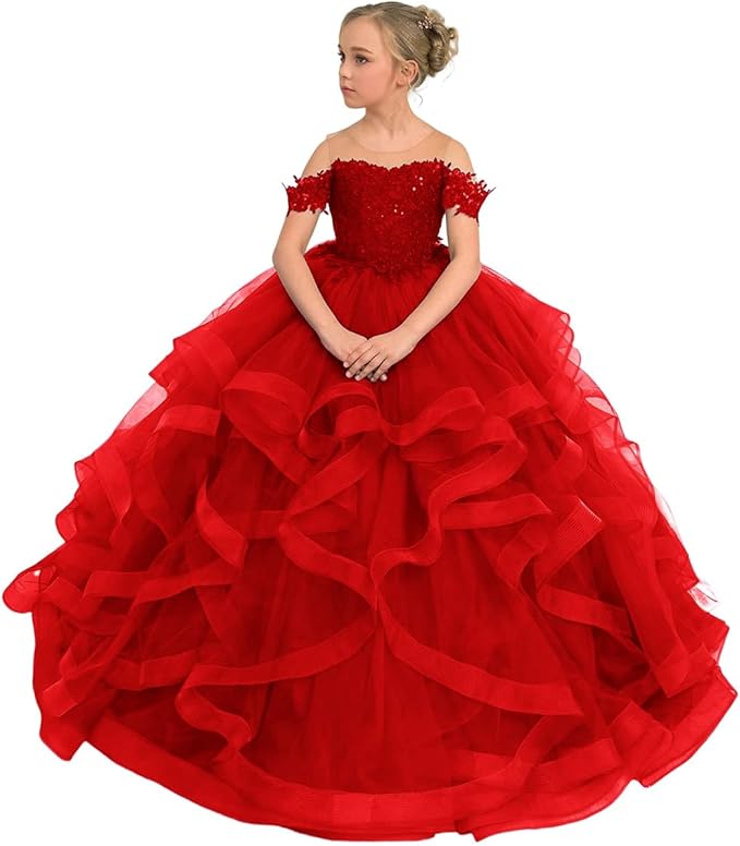 Flower Girl Dresses for Wedding Lace Off Shoulder Pageant Dress Tulle Ball Gown