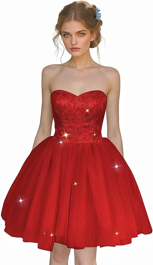 Tulle Beading Homecoming Dresses Short Strapless Dress Mini Lace Tulle Prom Dress for Women 2025