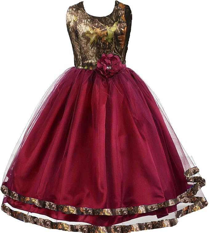 Bride Ankle Length Camo and Tulle Flower Girl Dress Wedding Guest Bridesmaid Gowns