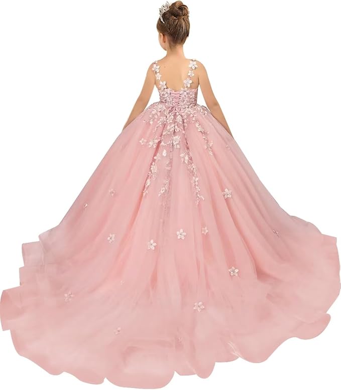 Girl's Pageant Princess Dress Flower Girl Dress Appliques Ball Gown Tulle Kids Communion Party Gowns