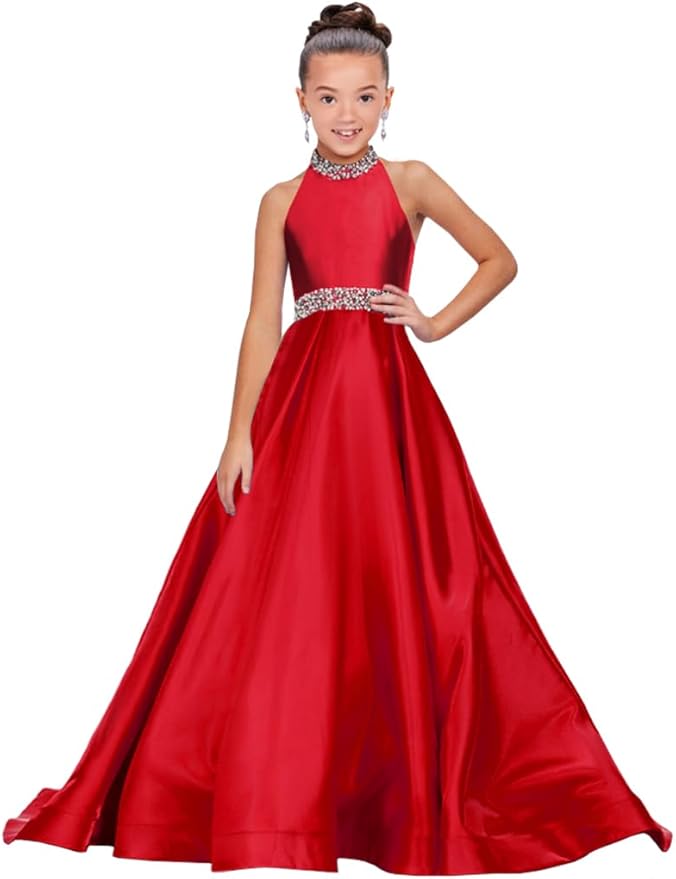 Girls Pageant Dress Princess Long Halter Birthday Party Ball Gowns with Train PT105