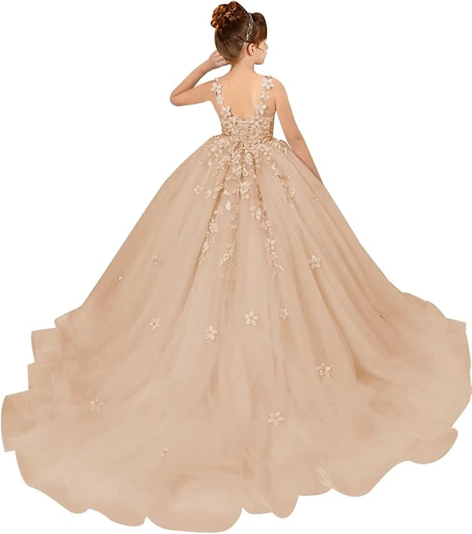 Tulle Flower Girl Dresses for Wedding Floral Appliques Princess Pageant Dress Girls Birthday Party Ball Gown
