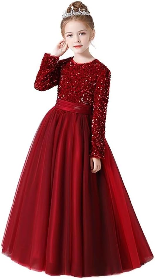Flower Girl Dresses Wedding Bridesmaid Sequins Tulle Puffy Skirt Girls Birthday Party Pageant Gown Floor Length