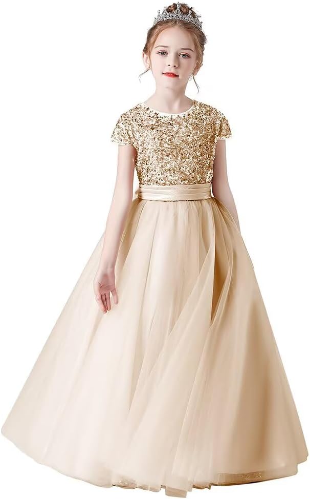 Flower Girls Dress Pageant Dress Junior Bridesmaids Dress Ball Gown for Girls Tulle Sequin Girls Formal Dress