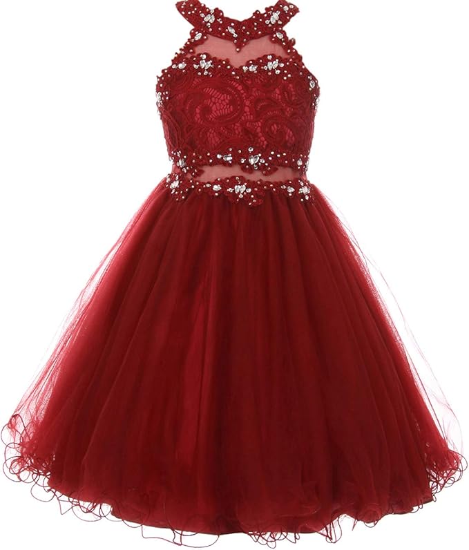 Big Girls Sparkle Rhinestone Halter Junior Bridesmaid Pageant Flower Girl Dress