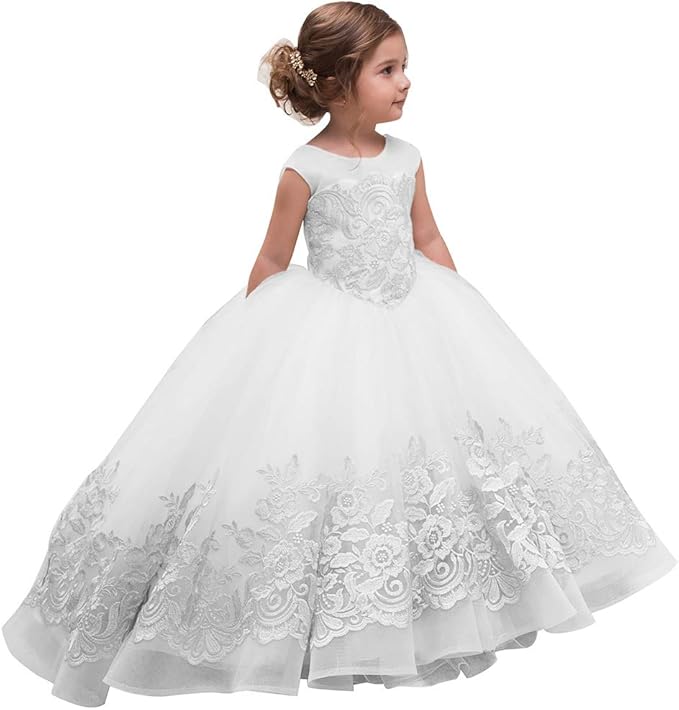 Tulle Flower Girl Dresses for Wedding Lace Applique Princess Ruffles Pageant Dress Long Party Ball Gown