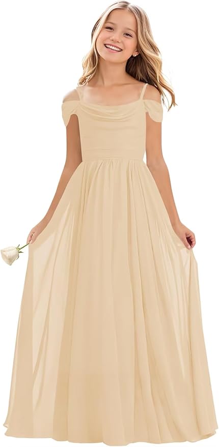 Cold Shoulder Junior Bridesmaid Dresses with Pockets Cowl Neck Flower Girl Dresses Party Pageant Gowns
