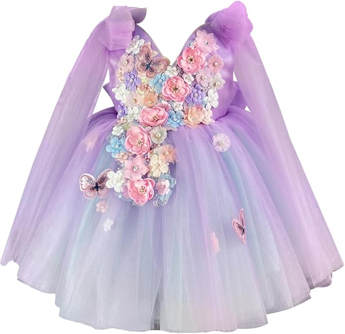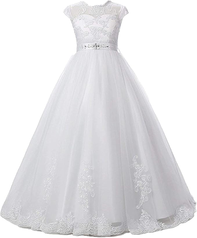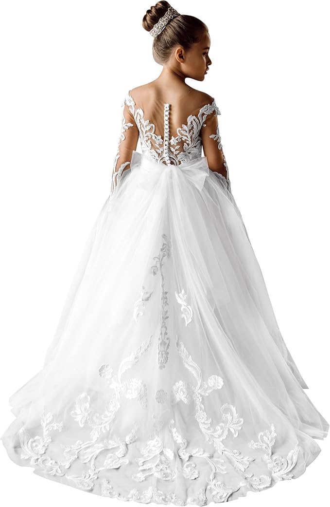Flower Girls Lace Tulle Ball Gowns with Bow-Knot First Communion Dresses Tutu Pageant Dress for Wedding Princess