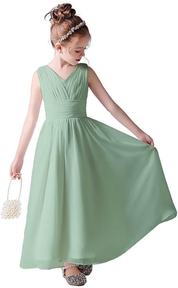 Little Girls Formal Party Dress Long Chiffon Flower Girl Dresses Wedding Junior Bridesmaid Sleeveless Dress