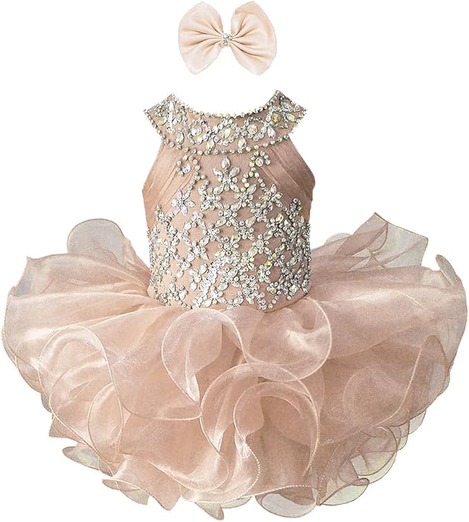 Baby Girls' Ruffles Crystal Cupcakes Pageant Dress Princess Birthday Party Tutu Ball Gowns PT014