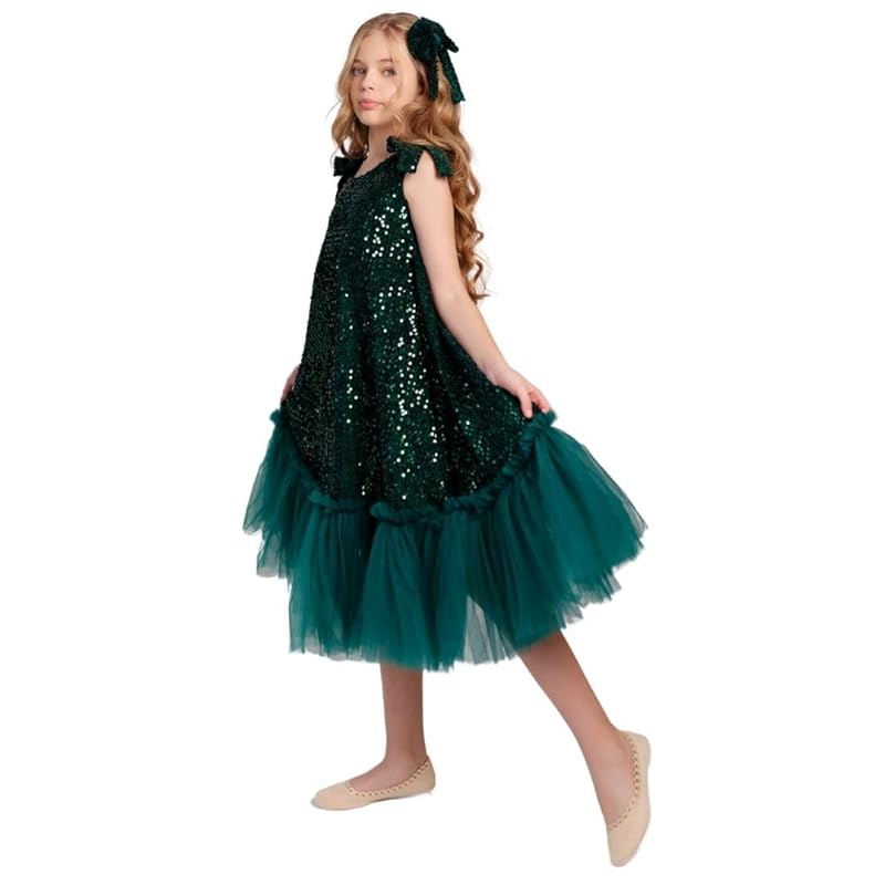 Girls Princess Dress - Luxury Tulle Wedding Party Gown with Sparkly Sequin & Bow - Stylish & Comfortable Fabric - Sparkly