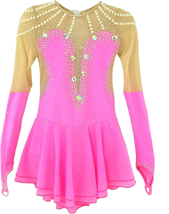 Girl's Pink Figure Skating Dress Competition Performance Costume Elegant Figure Skating Skirt for Girls
