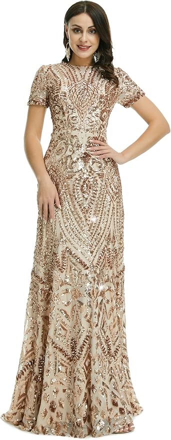 Short Sleeves A line Evening Dress Sequined Bridesmaid Dress Prom Formal Dress