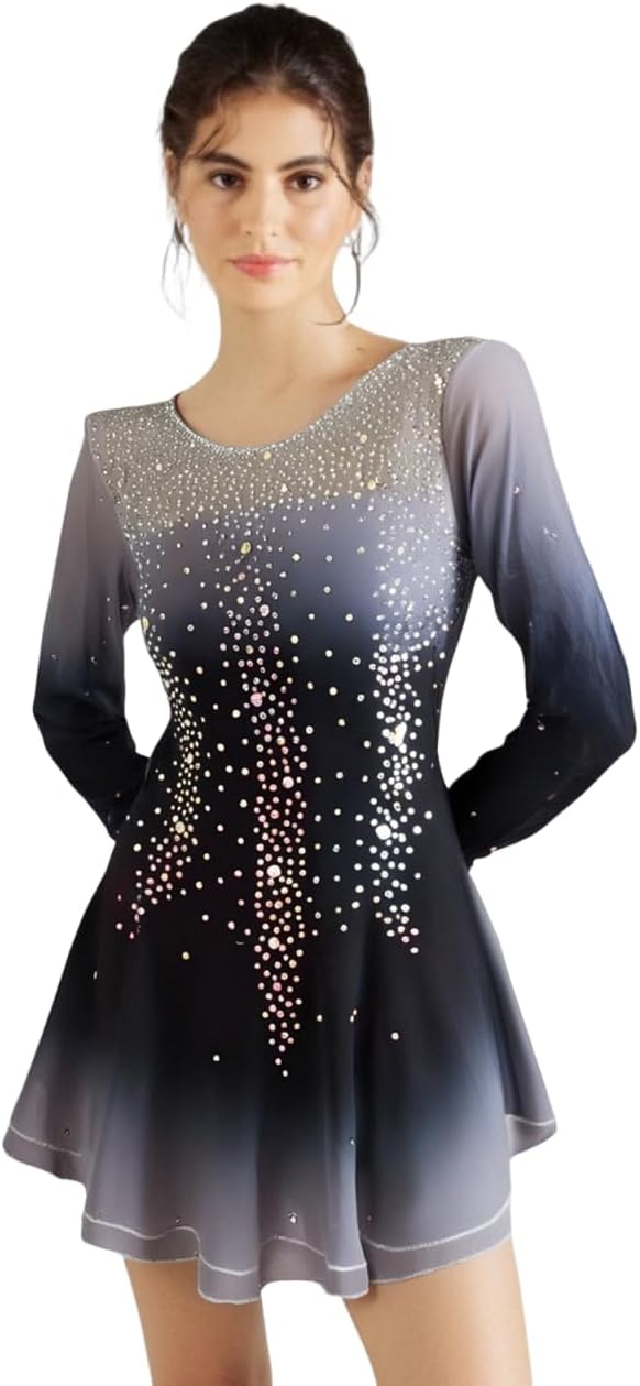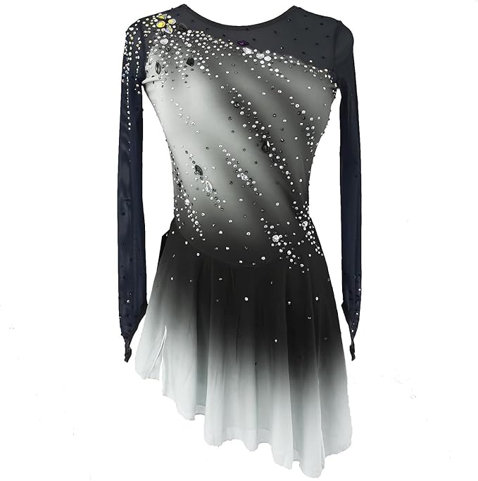 Customized Figure Skating Dress Girls Black Gray Gradient Stretch Ice Skating Costumes Women Competition Wear for Performance