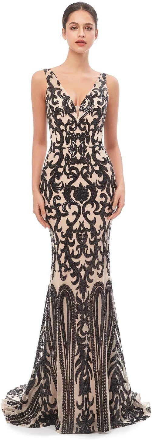 Mermaid V Neck Evening Dresses Sequind Prom Dresses Women's Party Dress Celebrity Pageant Gowns
