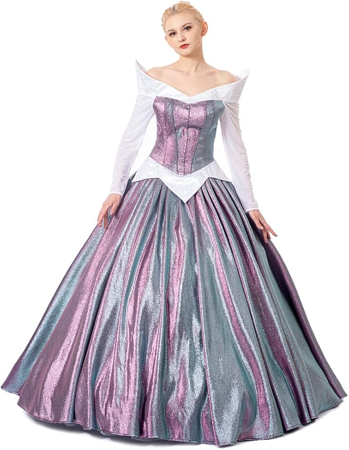 Princess Aurora Cosplay Costume Dress Aurora Ball Gown Bling Purple Dress Uniform for Adult Women Girls
