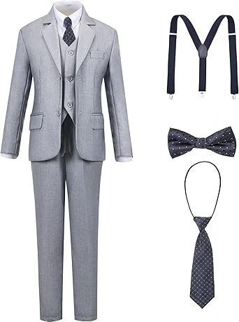 Boys Suit Kids Tuxedo Suits for Boys Adjustable Waist Vest Pants Suspenders Set Wedding Christmas Outfits