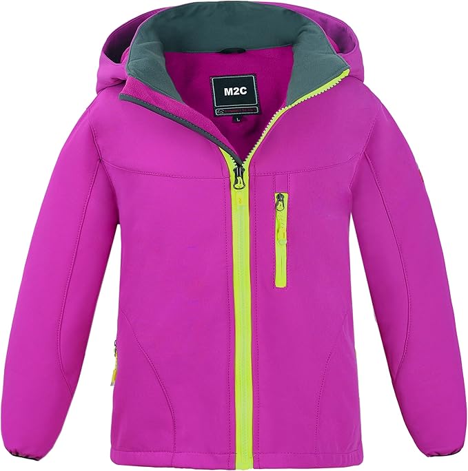 Boys Girls Hooded Windbreaker Fleece Lined Softshell Jacket