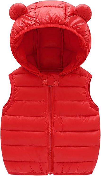 Baby Boy Girls Quilted Sleeveless Jacket Hooded Puffer Vest Full Zip Waistcoat Ultra Light Gilet 2-7 Years