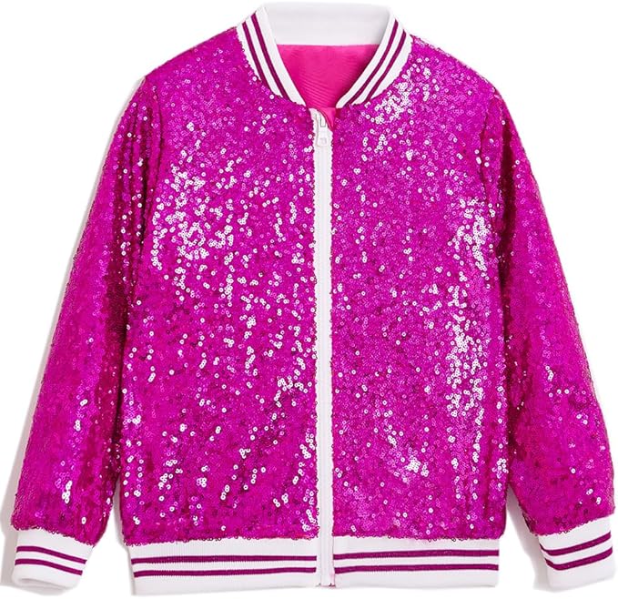 Girls Sequin Jackets Kids Boys Bomber Jacket Zip Up Coat Sparkle Outwear Birthday Clothes