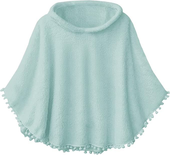 Kids Girls Sherpa Fleece Pullover Hoodies Pompom Tassel Fuzzy Coat Poncho Cloak Hooded Cape