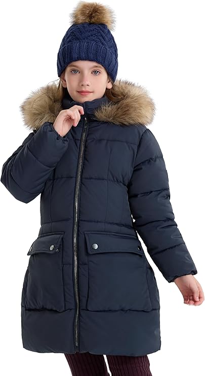Girls Puffer Winter Coat Faux-Down Heavyweight Snow Parka Fuzzy Fur Lining Hood Water-Resistant Long Jacket