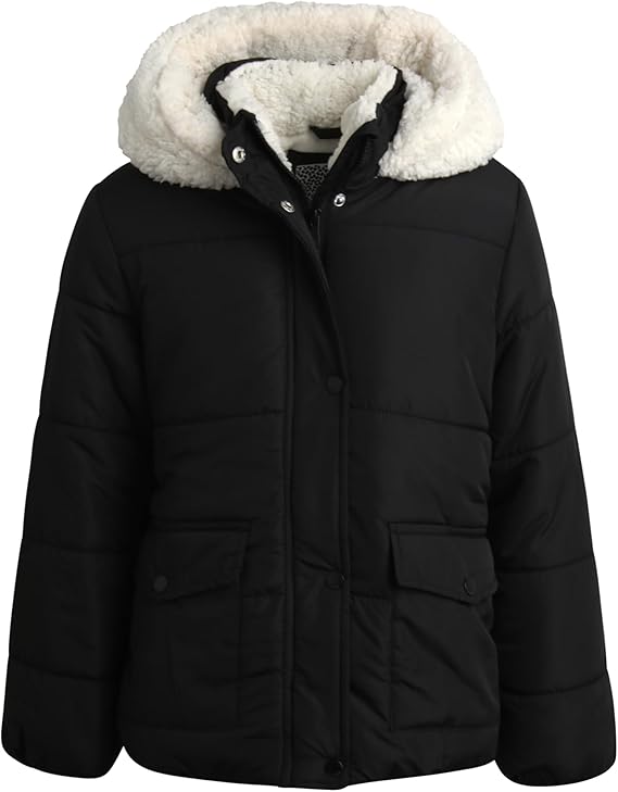 Girls' Heavyweight Puffer Jacket - Polar Fleece Lined Winter Jacket for Girls with Sherpa Collar and Hood (7-16)