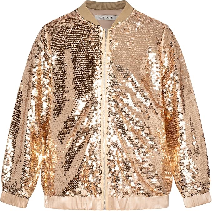 Girls Sequin Jacket Kids Bomber Zip Outwear Sparkle Fall Costume Top Dress Coat Size 5-14