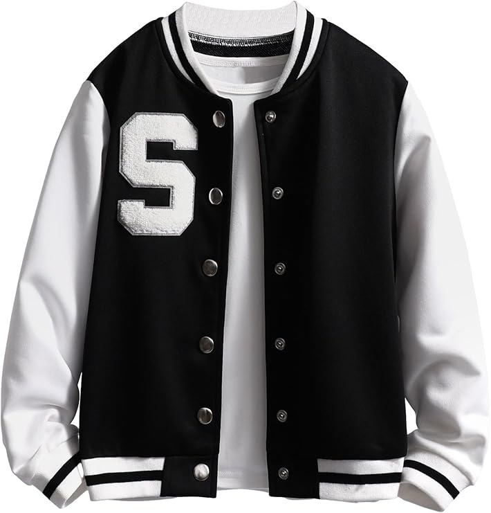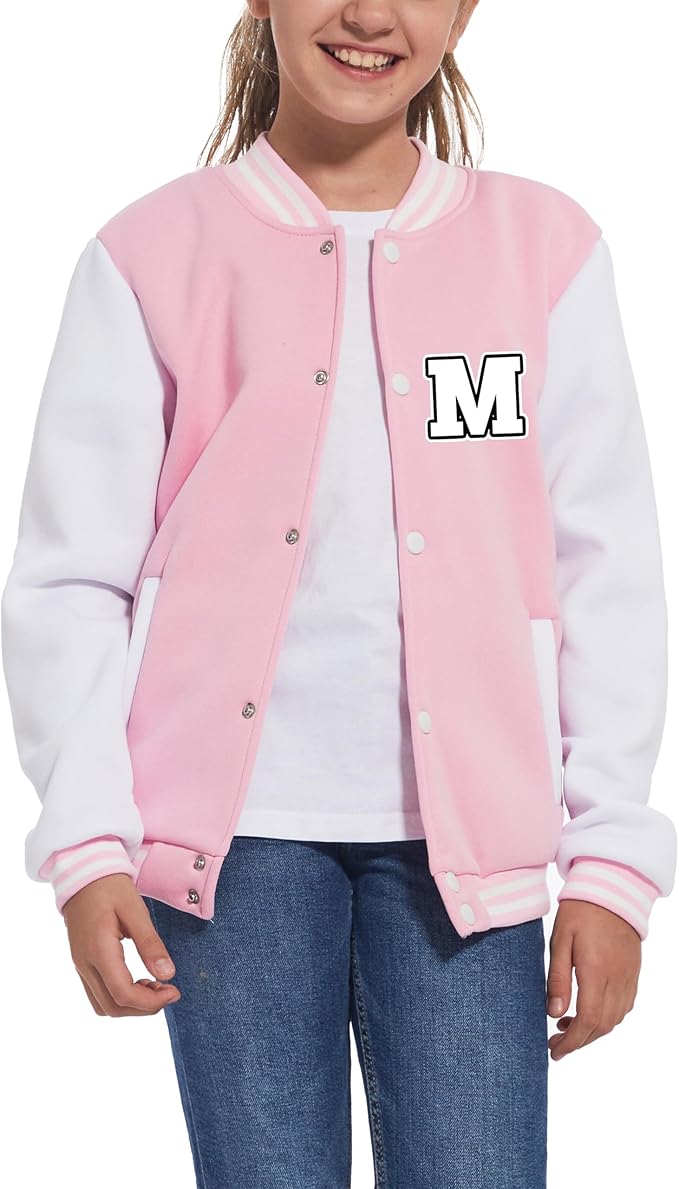 Kids Baseball Jacket Letter Print Boys Girls Varsity Coat Casual Lightweight School Uniform With Button