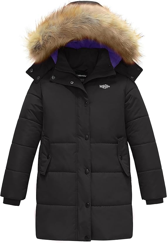 Girl's Winter Jacket Long Puffer Coat Fleece Outerwear Jacket with Hood Waterproof